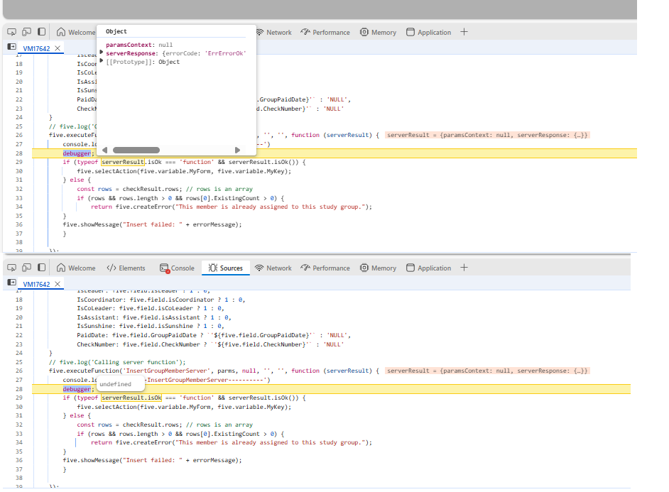 five.executeFunction('InsertGroupMemberServer', parms, null, '', '', function (serverResult) {